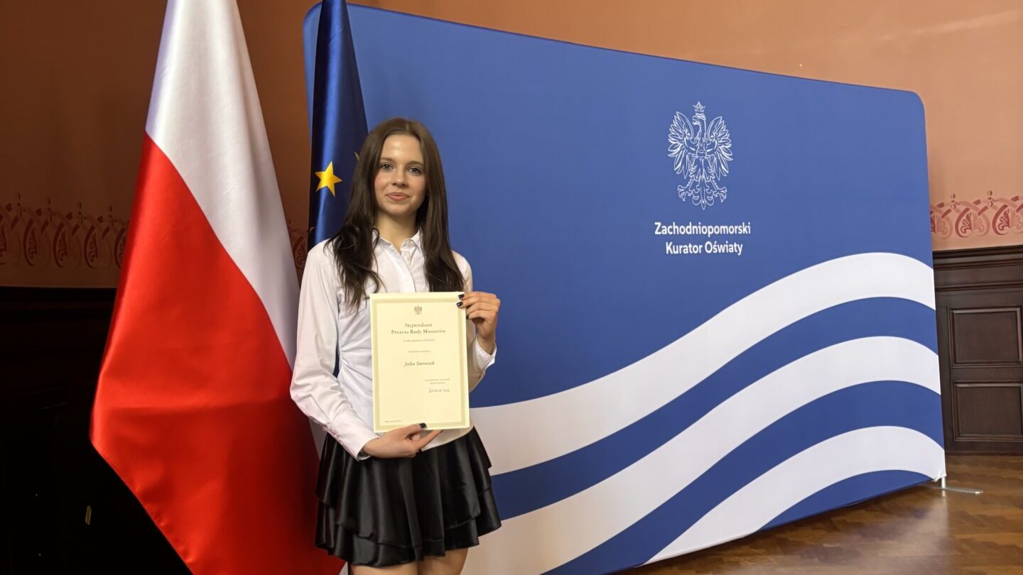 Z wielką radością i dumą informujemy, że uczennica naszej szkoły, Julia Sieroczek, znalazła się w elitarnym gronie najzdolniejszych uczniów województwa zachodniopomorskiego, otrzymując prestiżowe Stypendium Prezesa Rady Ministrów.