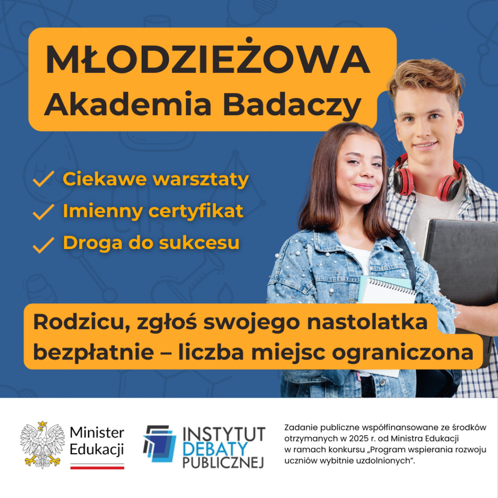 Młodzieżowa Akademia Badaczy daje młodym ludziom przestrzeń, by rozwijać nie tylko wiedzę, ale i umiejętności praktyczne. To program, który wzmacnia ich pewność siebie i przygotowuje do stawiania pierwszych kroków w świecie nauki – wskazuje dr Andrzej Skiba, prezes Instytutu Debaty Publicznej.