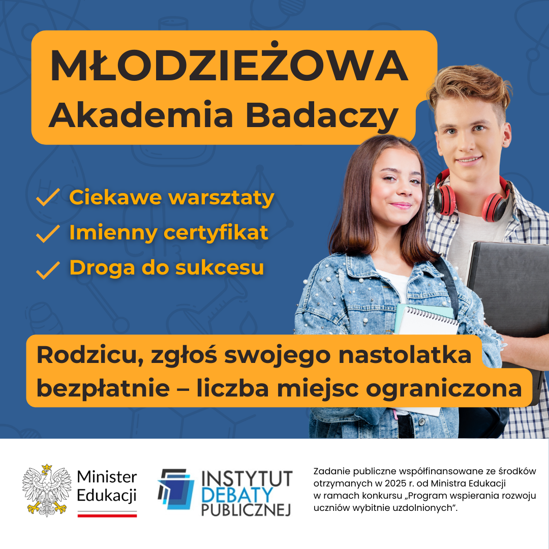 Udział w Młodzieżowej Akademii Badaczy jest całkowicie bezpłatny dzięki współfinansowaniu ze środków otrzymanych w 2025 r. od Ministra Edukacji w ramach konkursu „Program wspierania rozwoju uczniów wybitnie uzdolnionych”.
