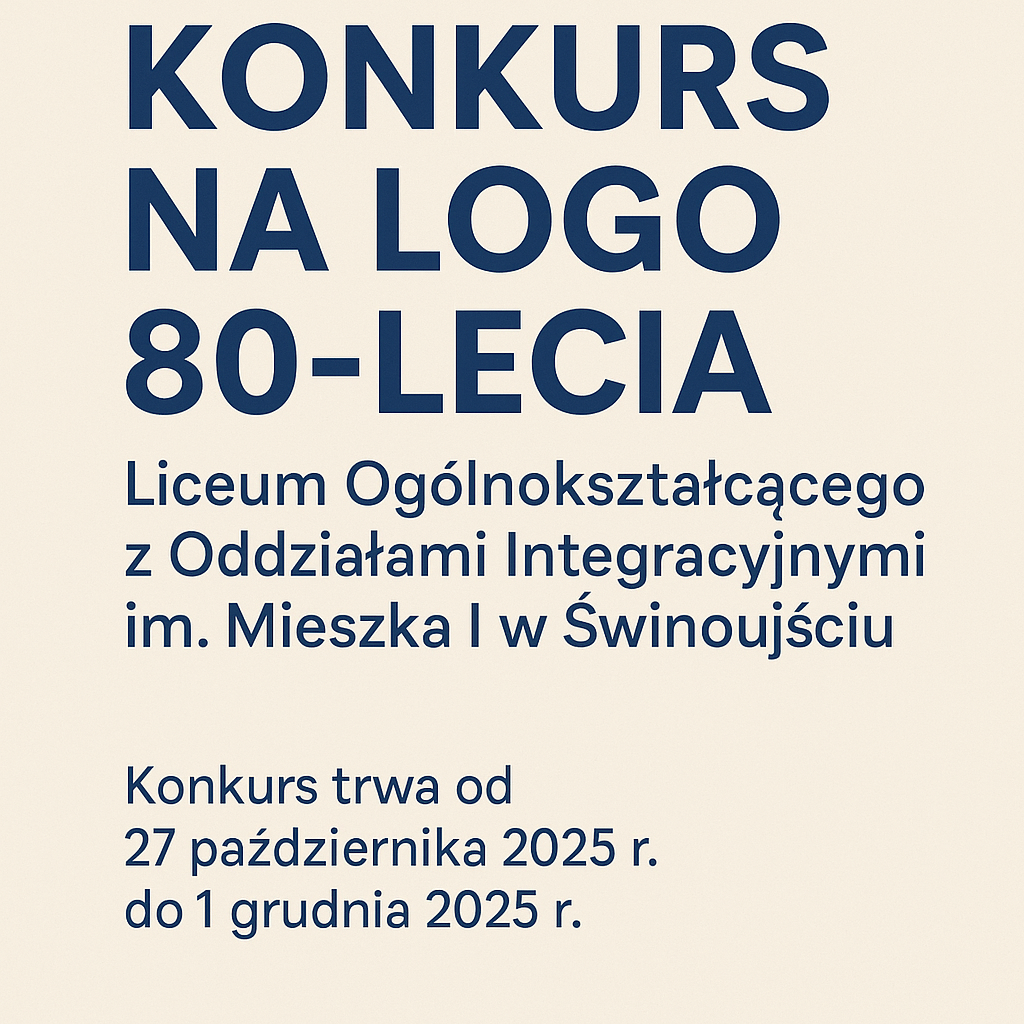 Pokażcie swoją kreatywność, wyobraźnię i przywiązanie do szkoły. Niech jubileusz 80-lecia Mieszka ma swój wyjątkowy symbol – stworzony przez uczniów! Gorąco zachęcamy do działań twórczych!