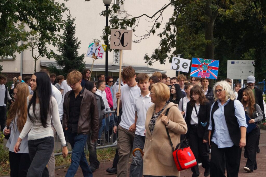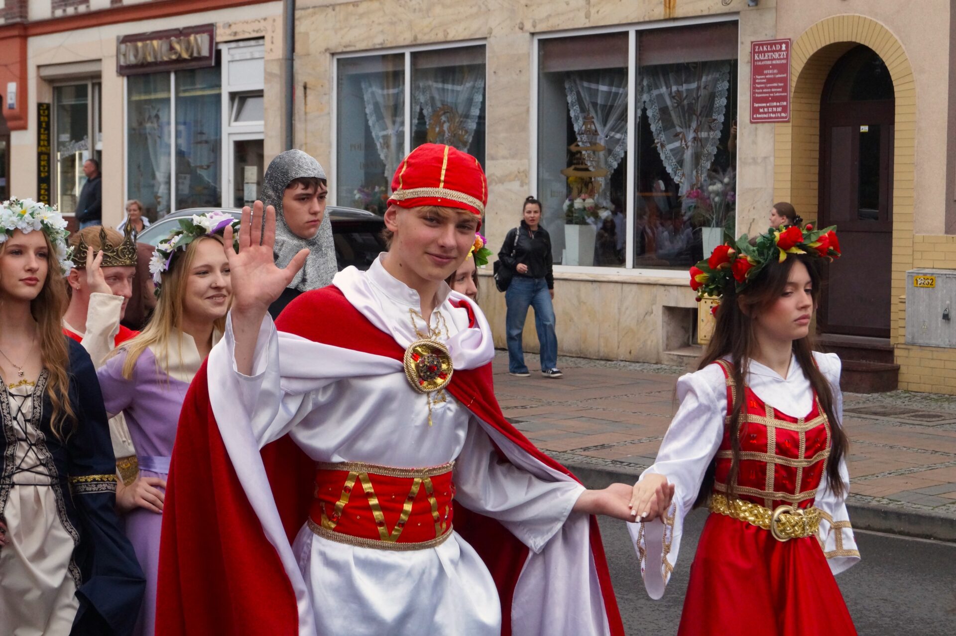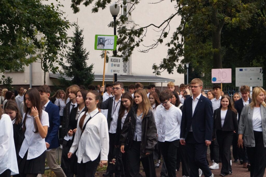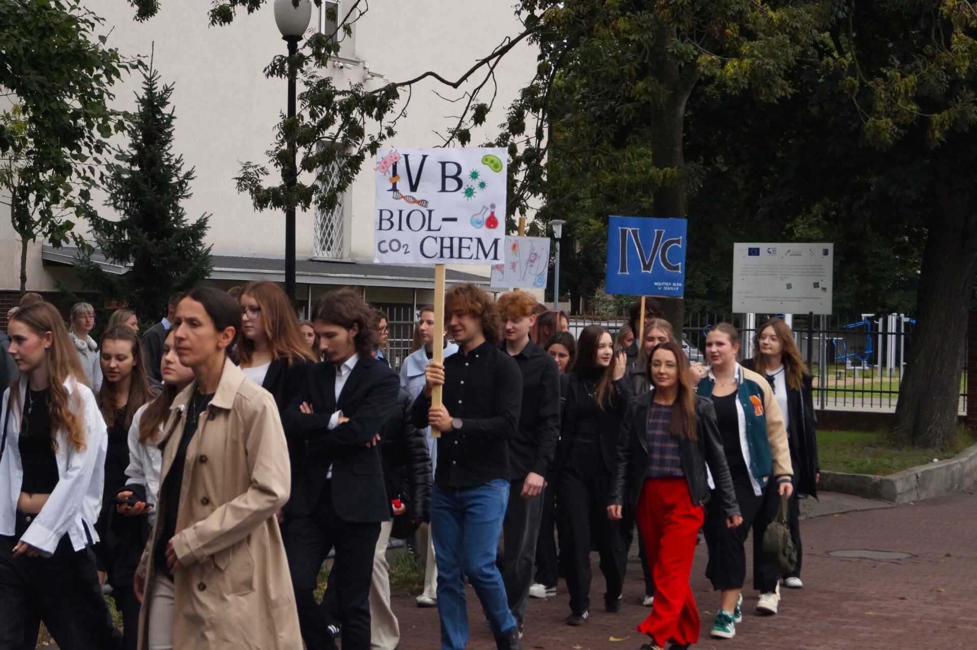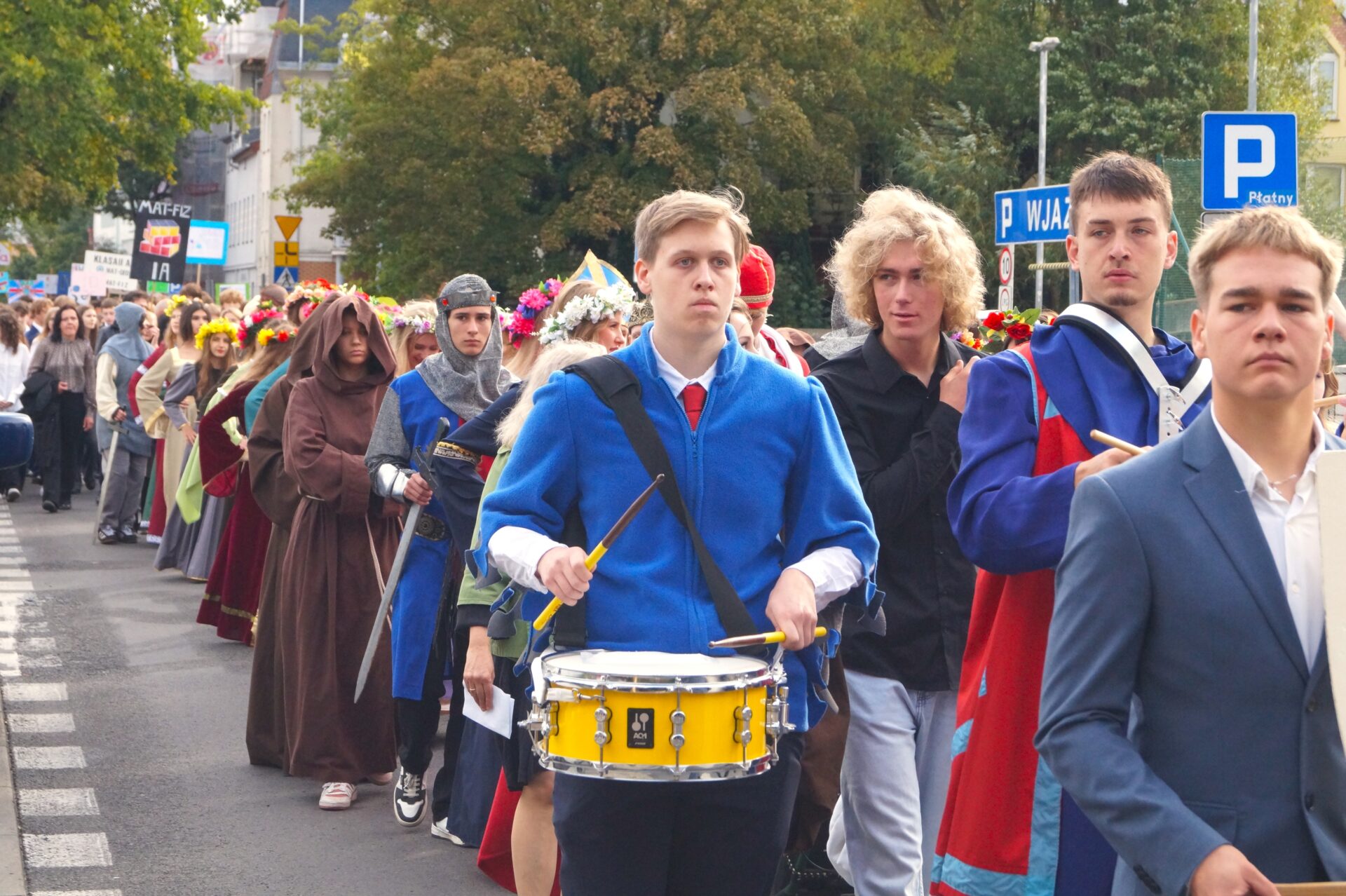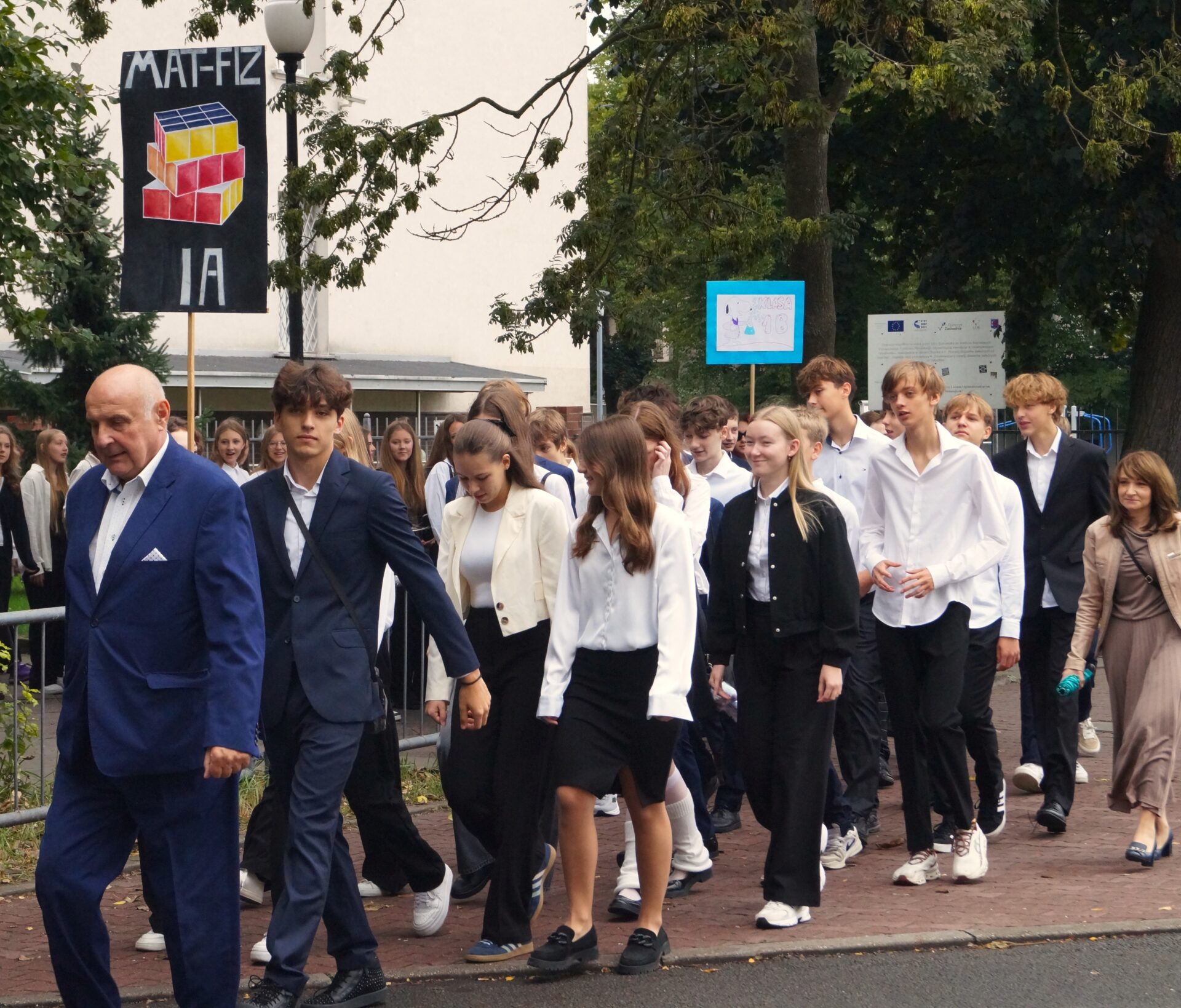 Chrzest Mieszka I na pewno miał miejsce w 966 roku. Po chrzcie Mieszka ochrzczono następnie jego dworzan i drużynę towarzyszących mu wojów. Za najbardziej prawdopodobne miejsce chrztu uznaje się Ostrów Lednicki koło Gniezna. Celebransem, który udzielał chrztu Mieszkowi, był Jordan, który przybył w 965 do nas roku w orszaku Dobrawy, a w 968 roku ustanowiony został pierwszym biskupem w Polsce. Co roku na pamiątkę tych kluczowych w historii naszego kraju wydarzeń maszerujemy przez miasto nie tylko prezentując "świtę Mieszka i Dobrawy", ale przy okazji z dumą informując o osiągnięciach naszej szkoły.