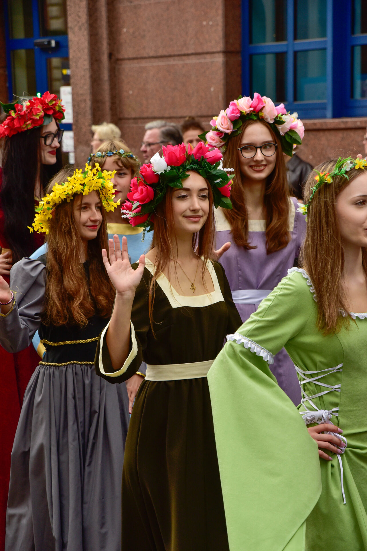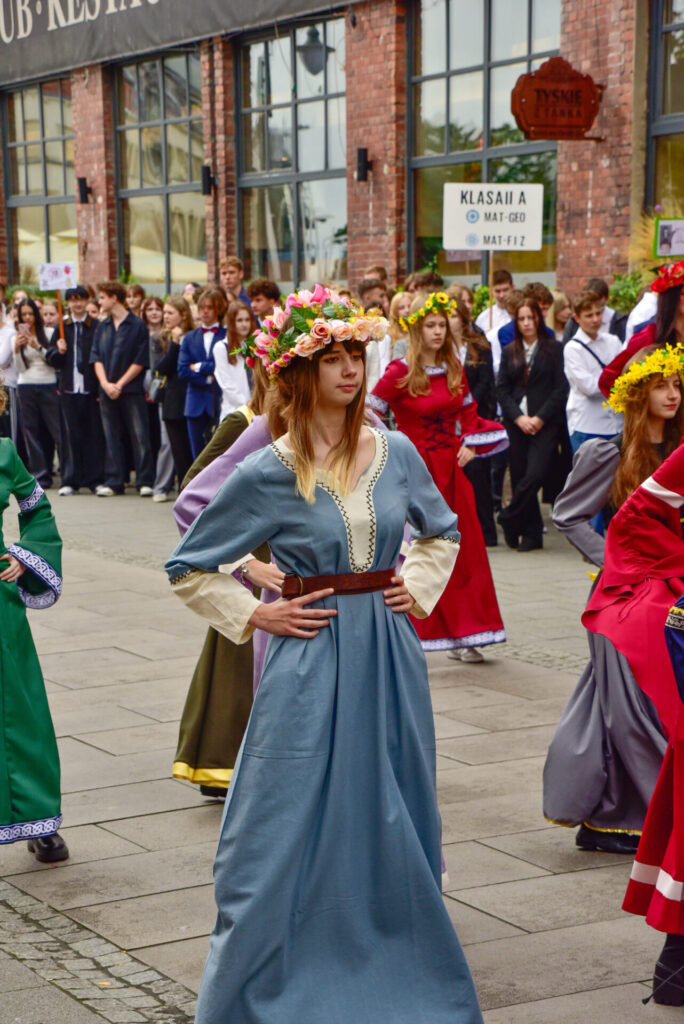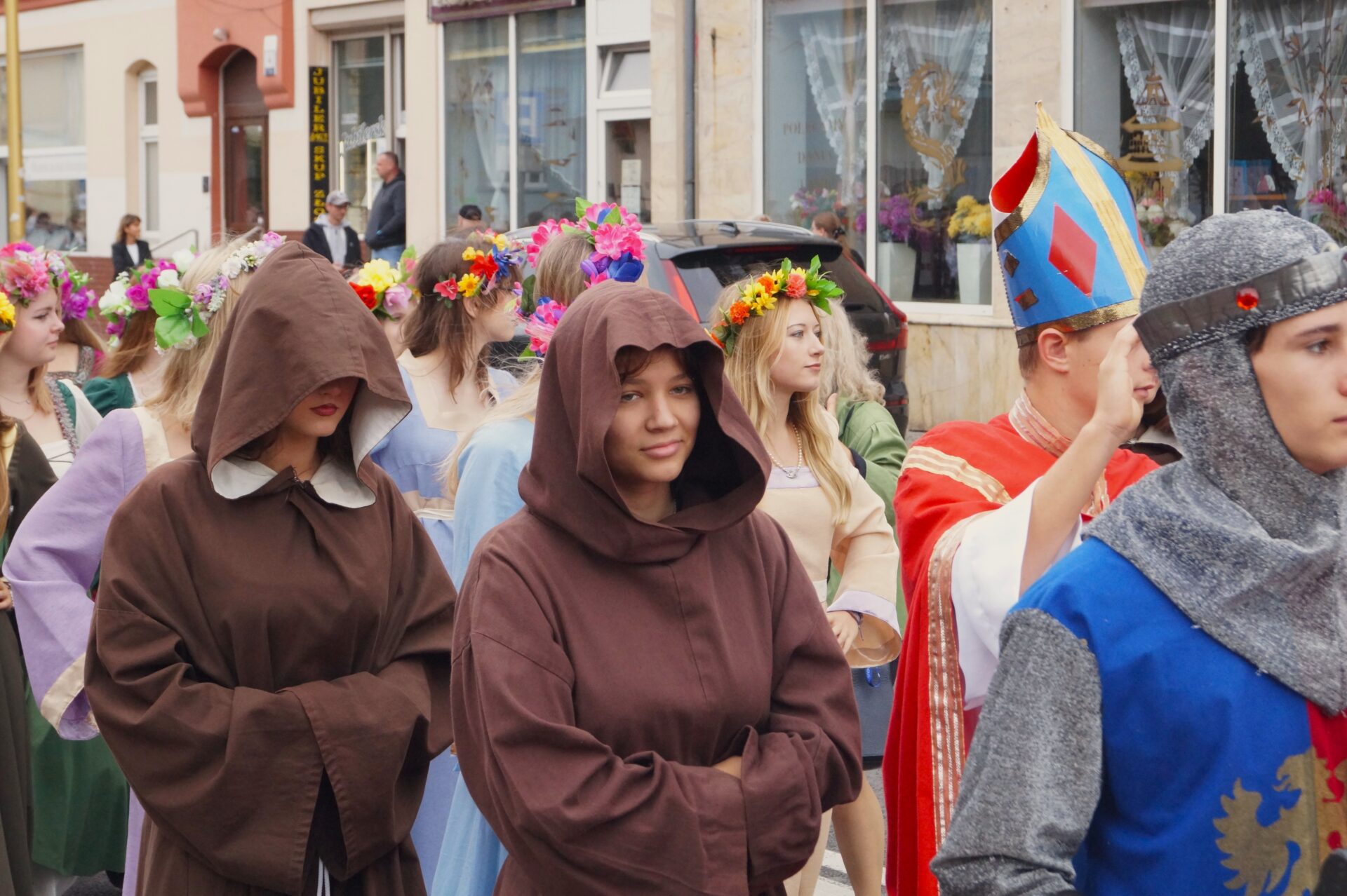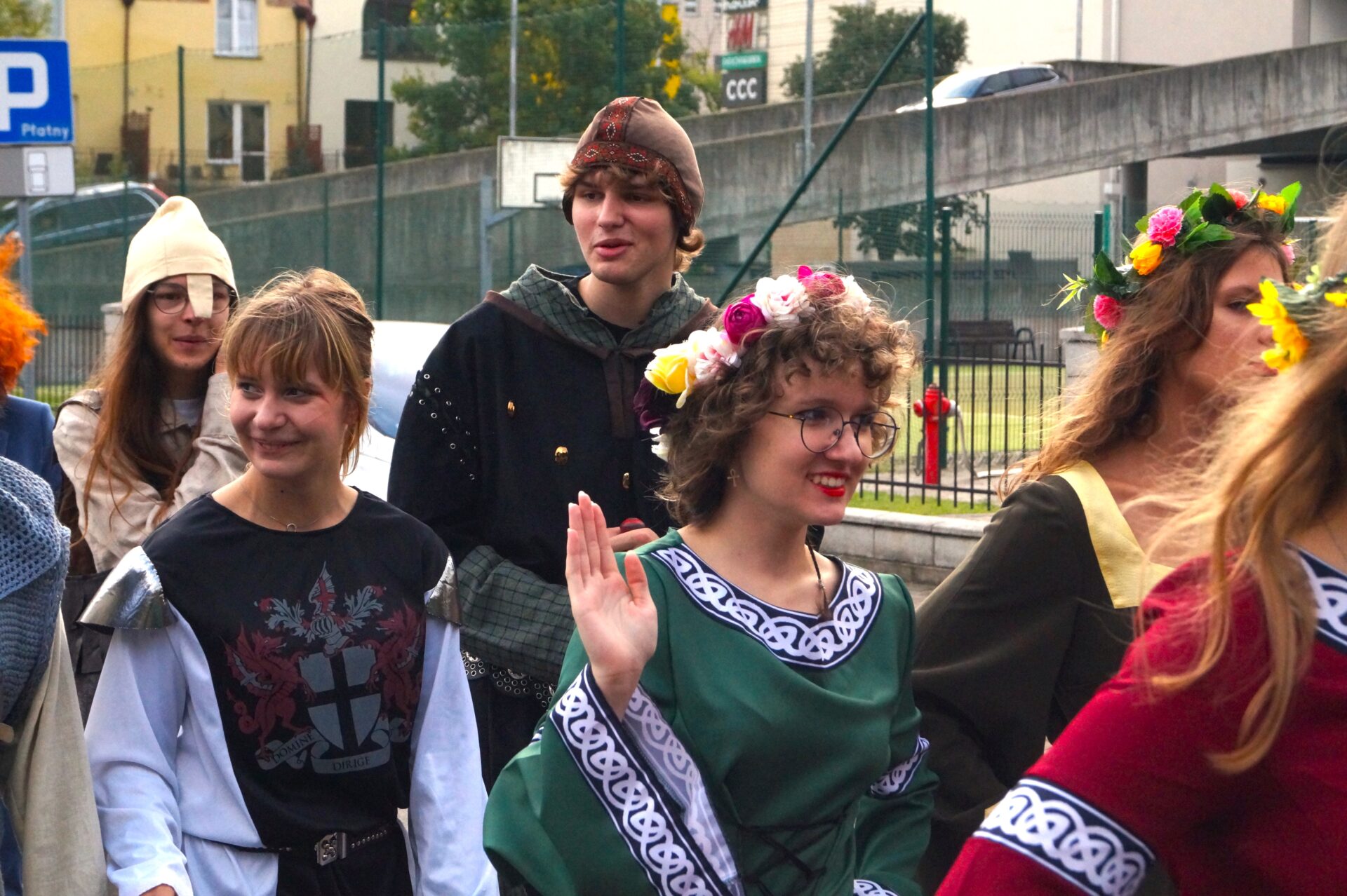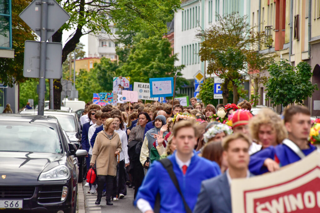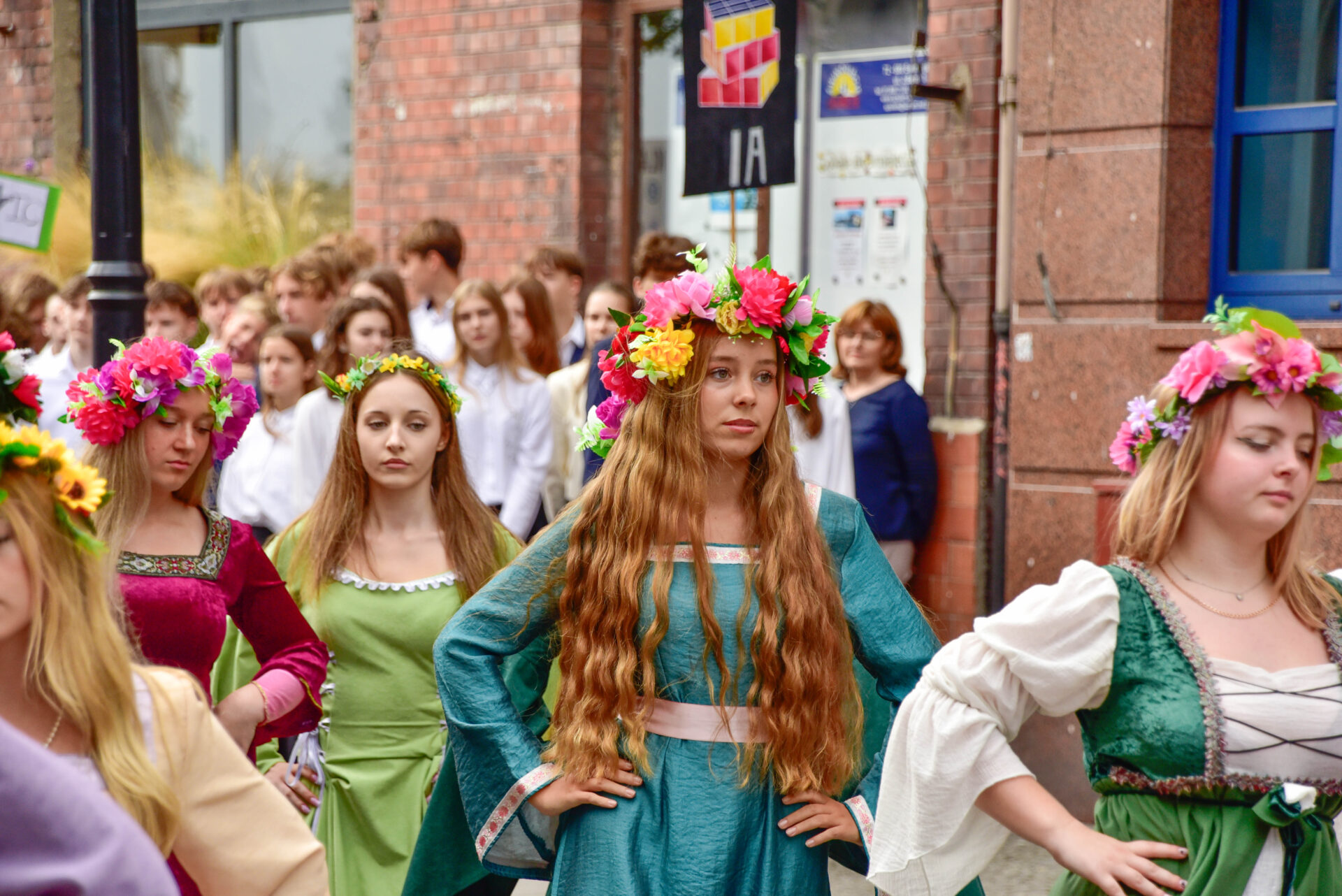 Chrzest Mieszka I na pewno miał miejsce w 966 roku. Po chrzcie Mieszka ochrzczono następnie jego dworzan i drużynę towarzyszących mu wojów. Za najbardziej prawdopodobne miejsce chrztu uznaje się Ostrów Lednicki koło Gniezna. Celebransem, który udzielał chrztu Mieszkowi, był Jordan, który przybył w 965 do nas roku w orszaku Dobrawy, a w 968 roku ustanowiony został pierwszym biskupem w Polsce. Co roku na pamiątkę tych kluczowych w historii naszego kraju wydarzeń maszerujemy przez miasto nie tylko prezentując "świtę Mieszka i Dobrawy", ale przy okazji z dumą informując o osiągnięciach naszej szkoły.