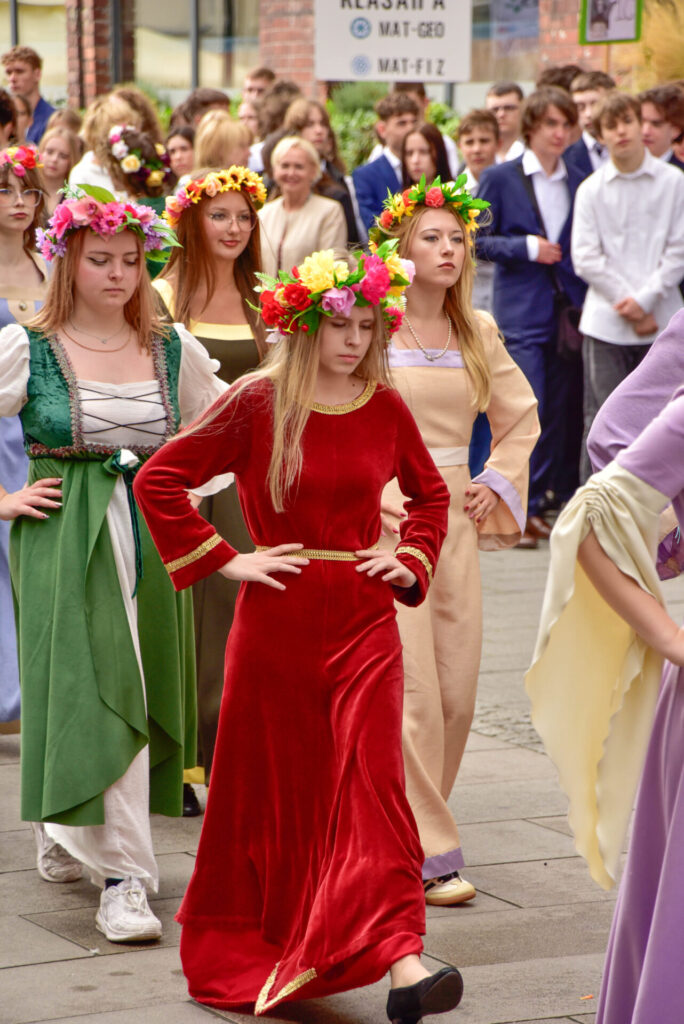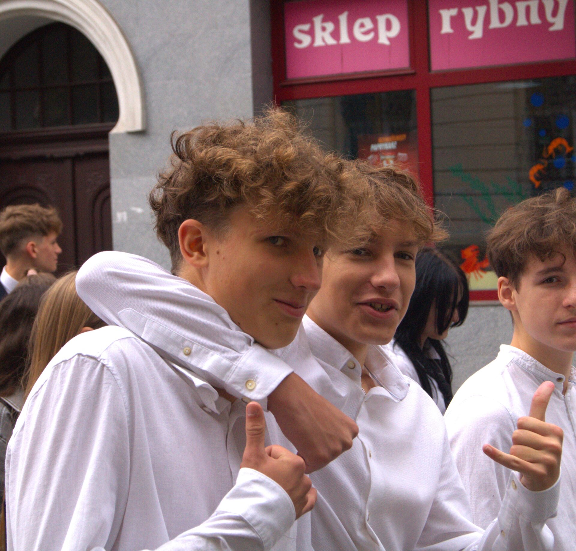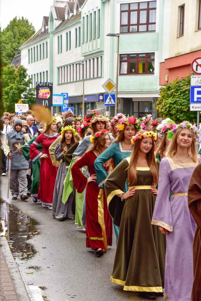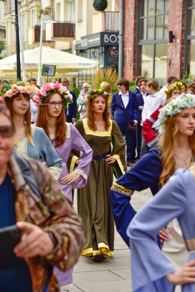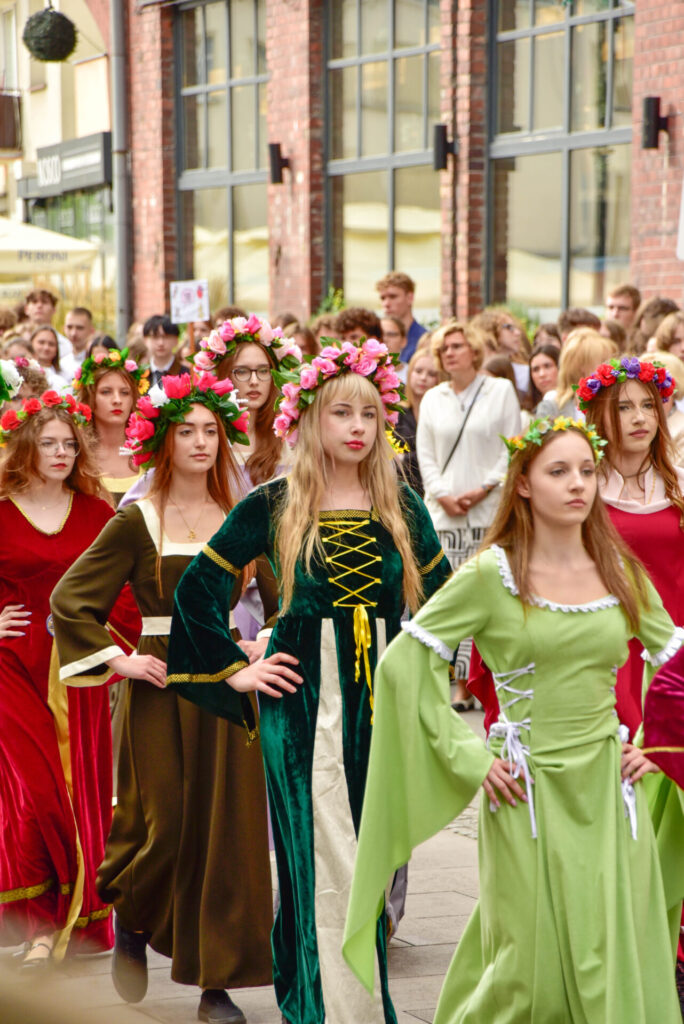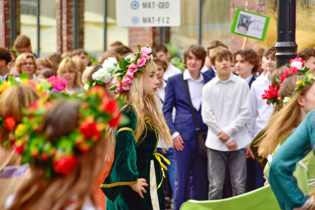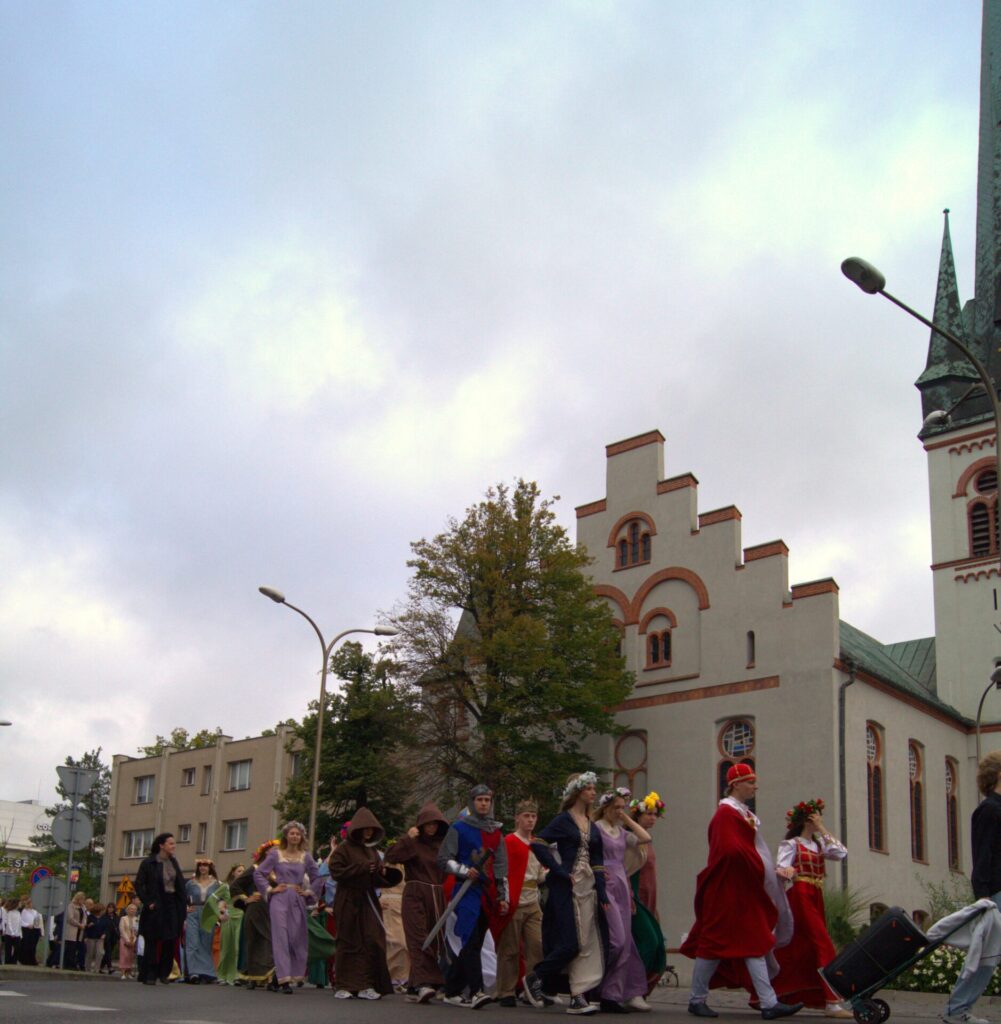 Chrzest Mieszka I na pewno miał miejsce w 966 roku. Po chrzcie Mieszka ochrzczono następnie jego dworzan i drużynę towarzyszących mu wojów. Za najbardziej prawdopodobne miejsce chrztu uznaje się Ostrów Lednicki koło Gniezna. Celebransem, który udzielał chrztu Mieszkowi, był Jordan, który przybył w 965 do nas roku w orszaku Dobrawy, a w 968 roku ustanowiony został pierwszym biskupem w Polsce. Co roku na pamiątkę tych kluczowych w historii naszego kraju wydarzeń maszerujemy przez miasto nie tylko prezentując "świtę Mieszka i Dobrawy", ale przy okazji z dumą informując o osiągnięciach naszej szkoły.