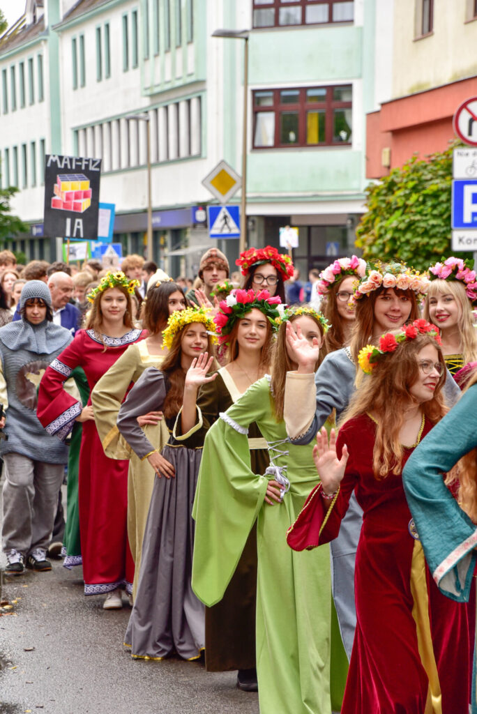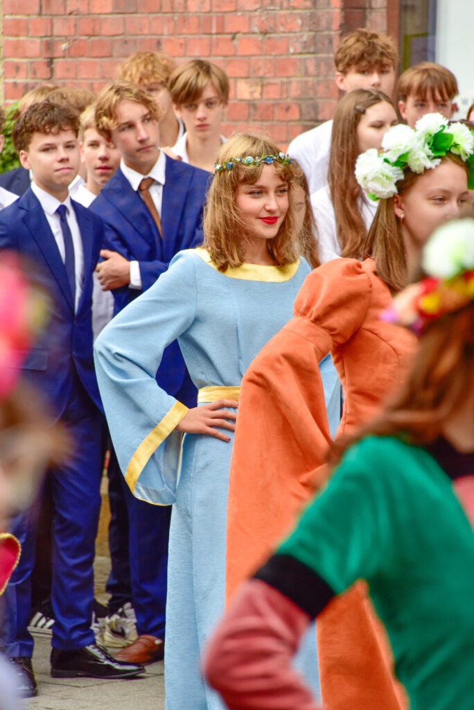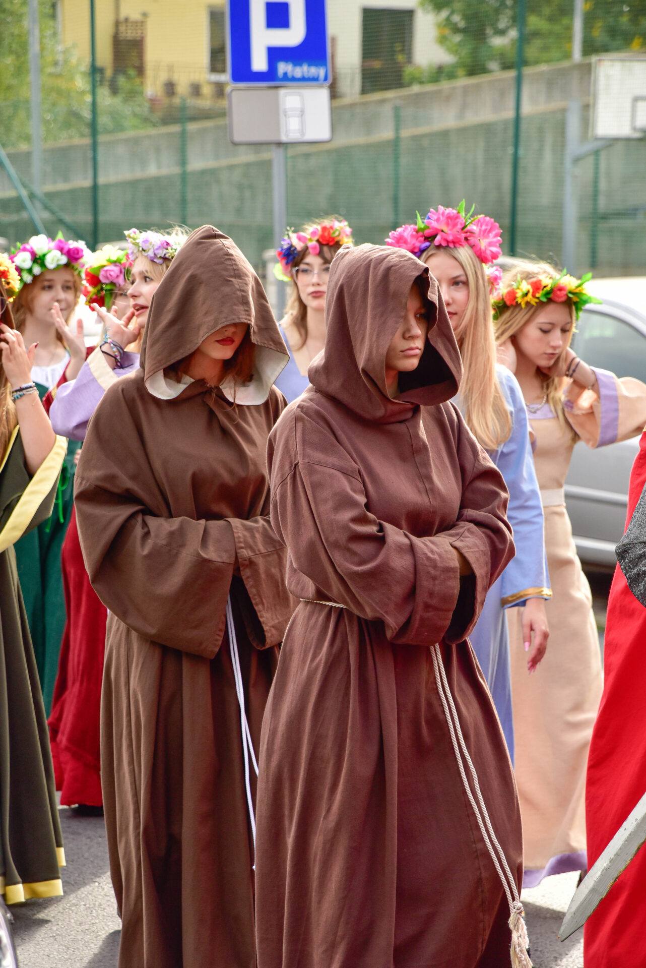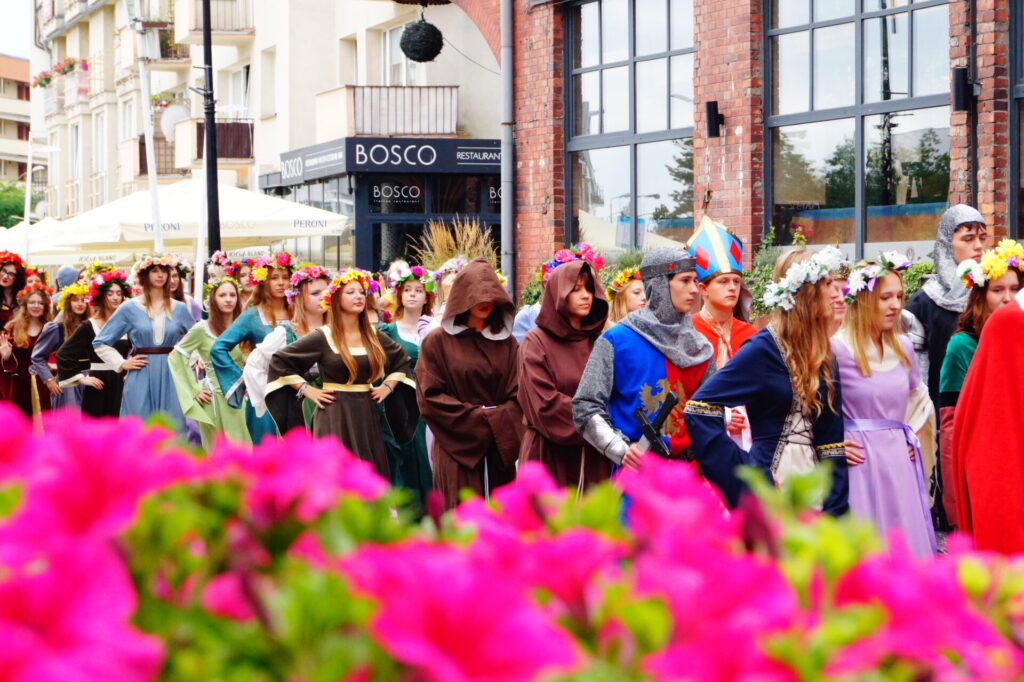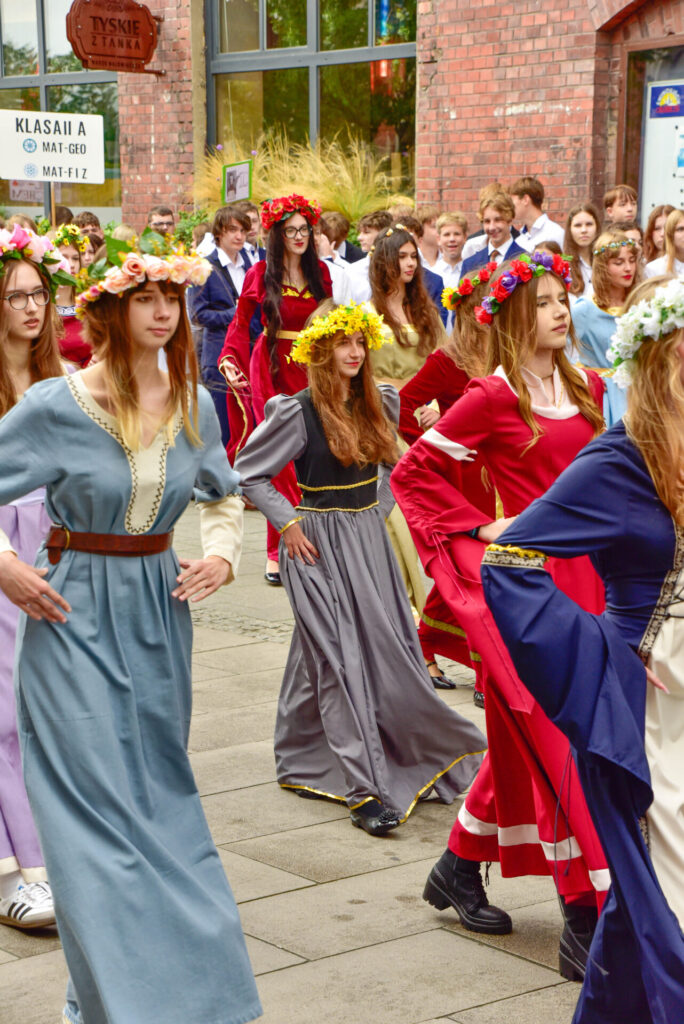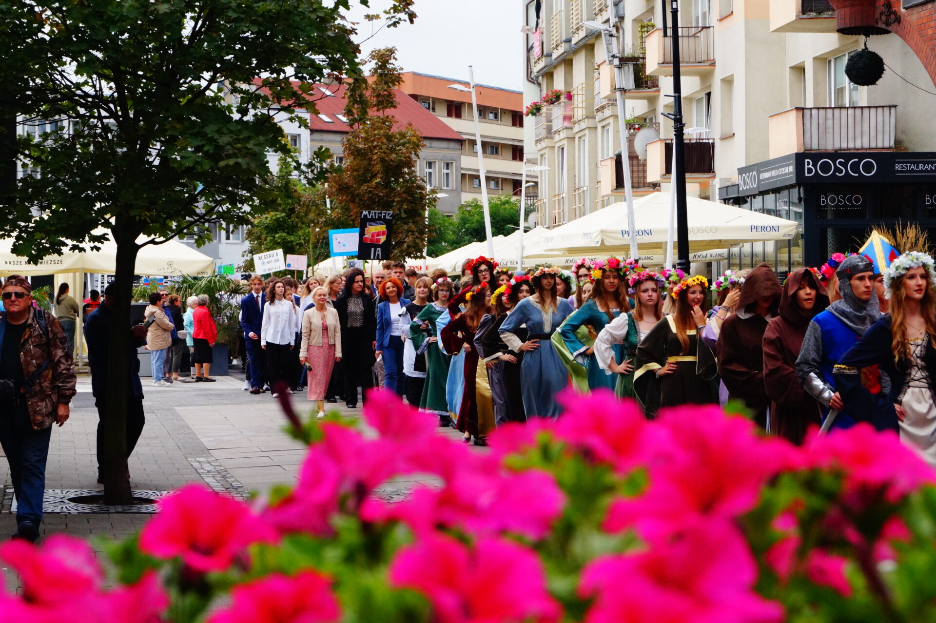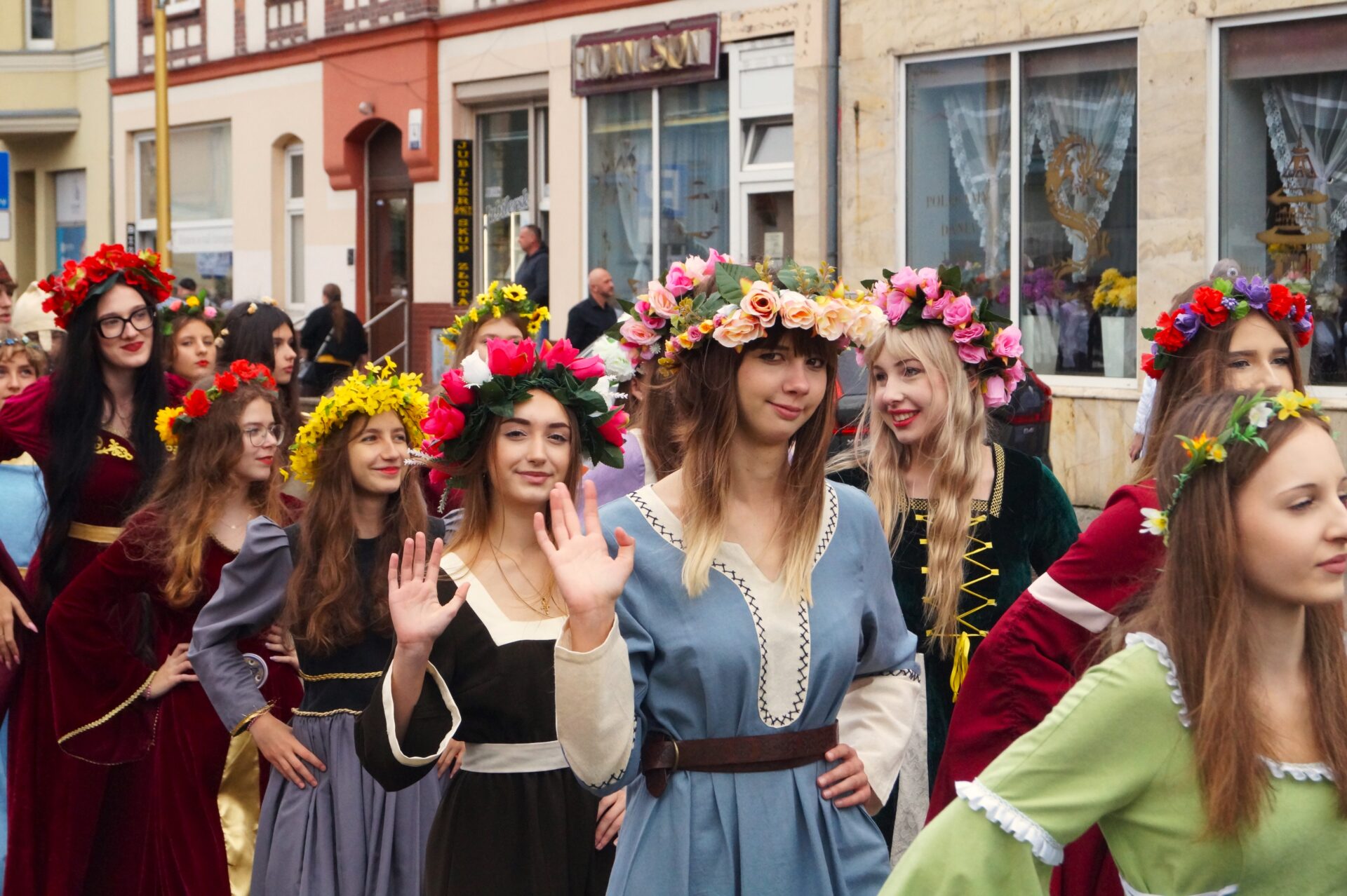 Chrzest Mieszka I na pewno miał miejsce w 966 roku. Po chrzcie Mieszka ochrzczono następnie jego dworzan i drużynę towarzyszących mu wojów. Za najbardziej prawdopodobne miejsce chrztu uznaje się Ostrów Lednicki koło Gniezna. Celebransem, który udzielał chrztu Mieszkowi, był Jordan, który przybył w 965 do nas roku w orszaku Dobrawy, a w 968 roku ustanowiony został pierwszym biskupem w Polsce. Co roku na pamiątkę tych kluczowych w historii naszego kraju wydarzeń maszerujemy przez miasto nie tylko prezentując "świtę Mieszka i Dobrawy", ale przy okazji z dumą informując o osiągnięciach naszej szkoły.