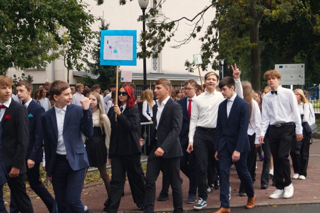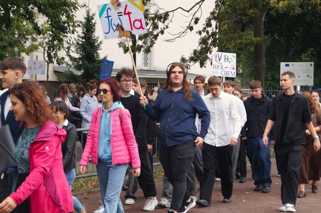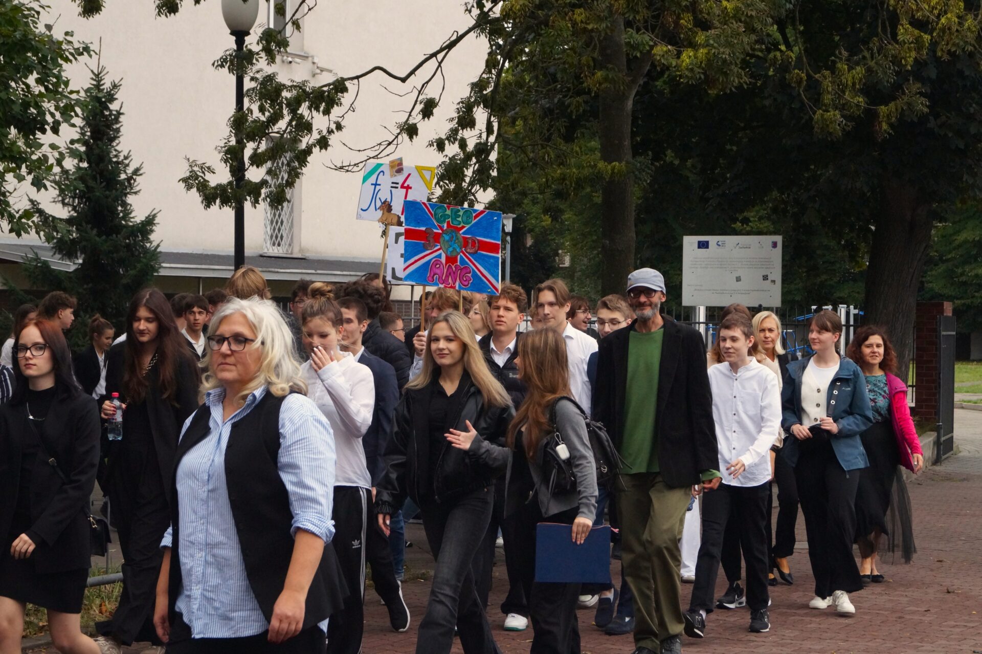 Nagłośnienie podczas marszu i w trakcie uroczystości na sali w szkole: Piotr Kowalski, 4a. Narracja w czasie marszu: Anna Caban 4c i Martyna Wojciechowska - absolwentka